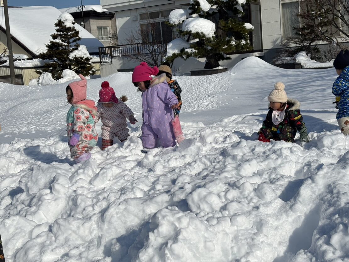 1月28日もも(1歳児)組さんは七二公園へ行きました! 膝上まであるフカフカのま・・・