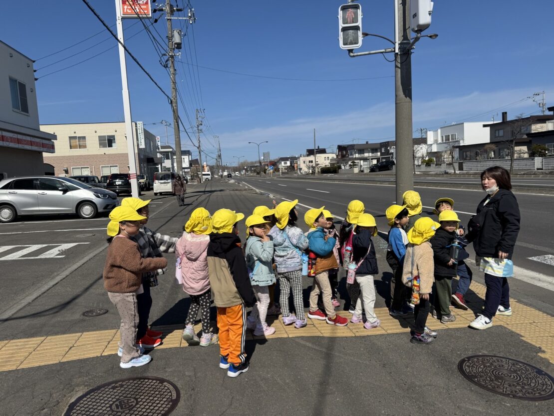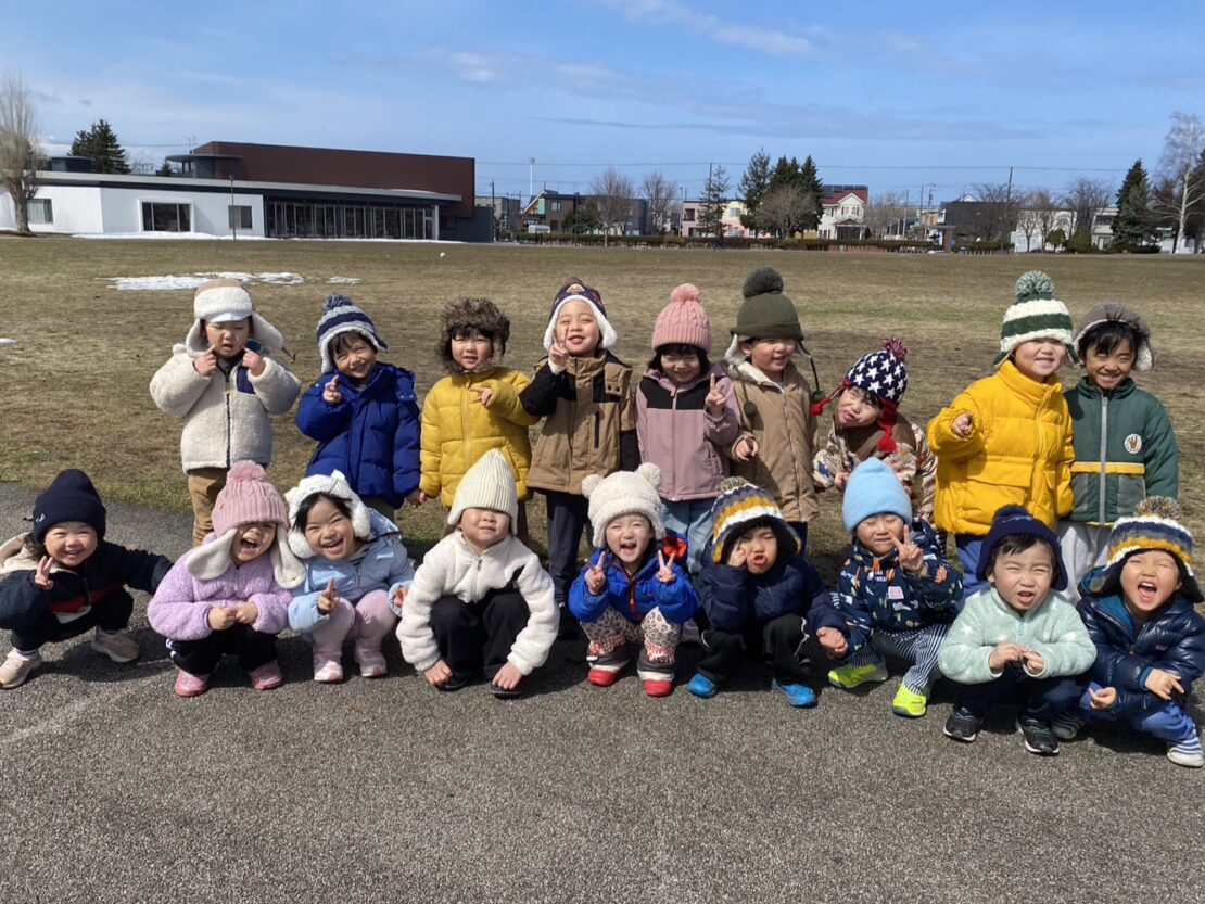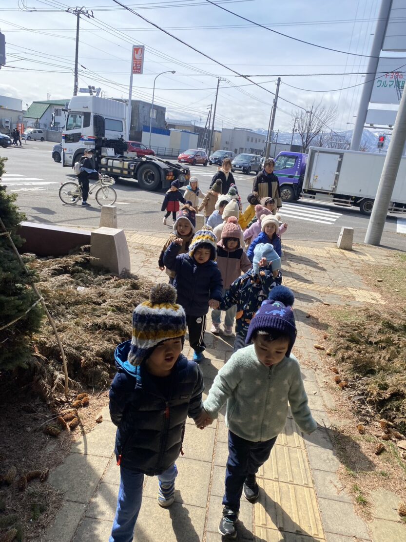 ちゅうりっぷ組最後のお散歩!「ひまわりさんになったらたくさんふれもりで遊びたーい!」と進級を楽しみにしているようです!