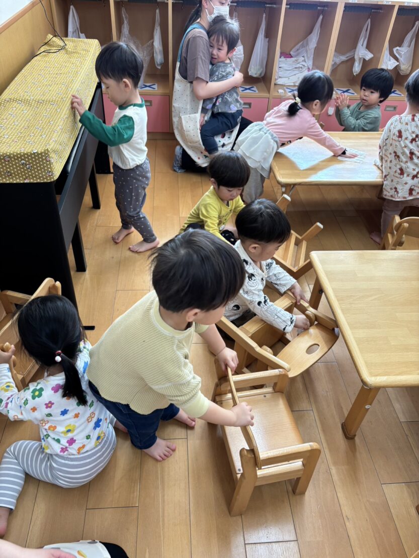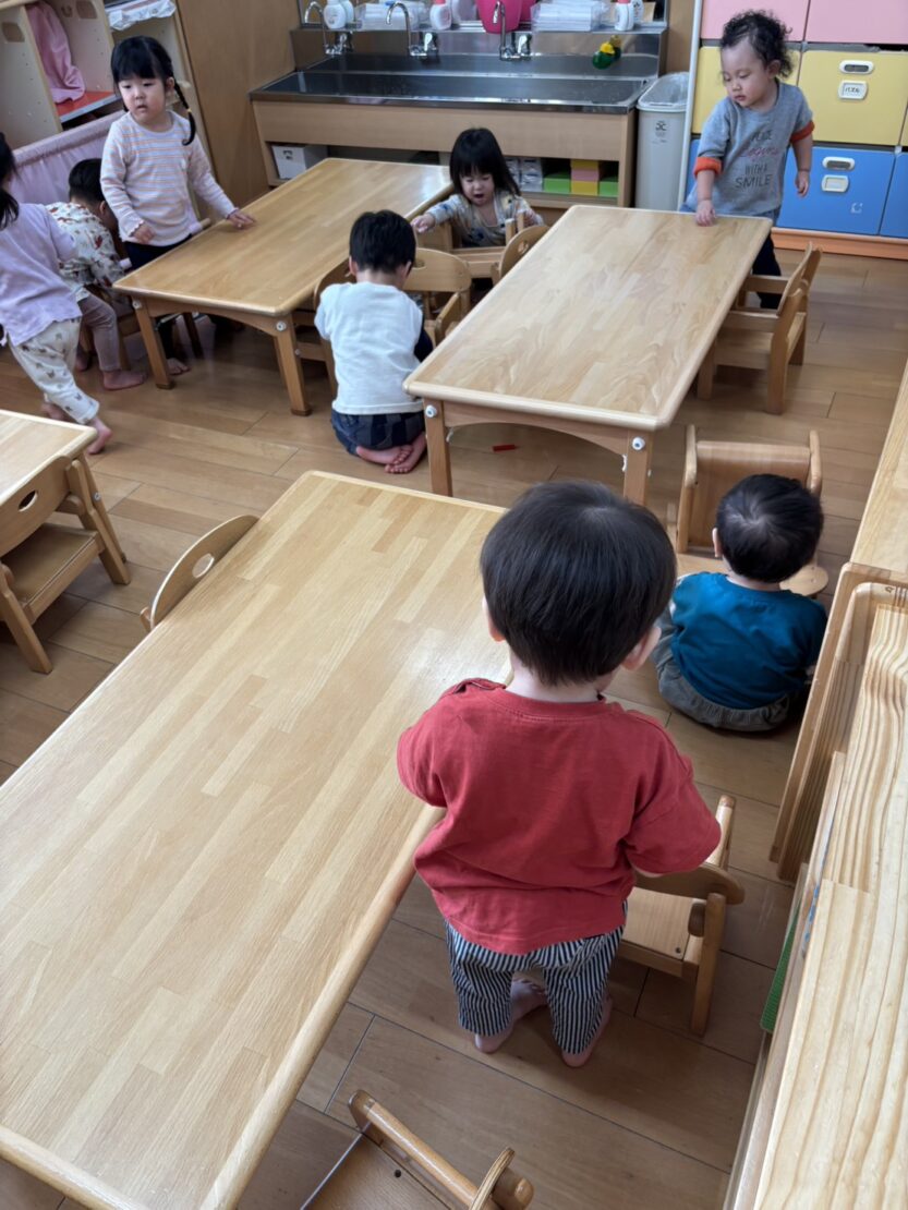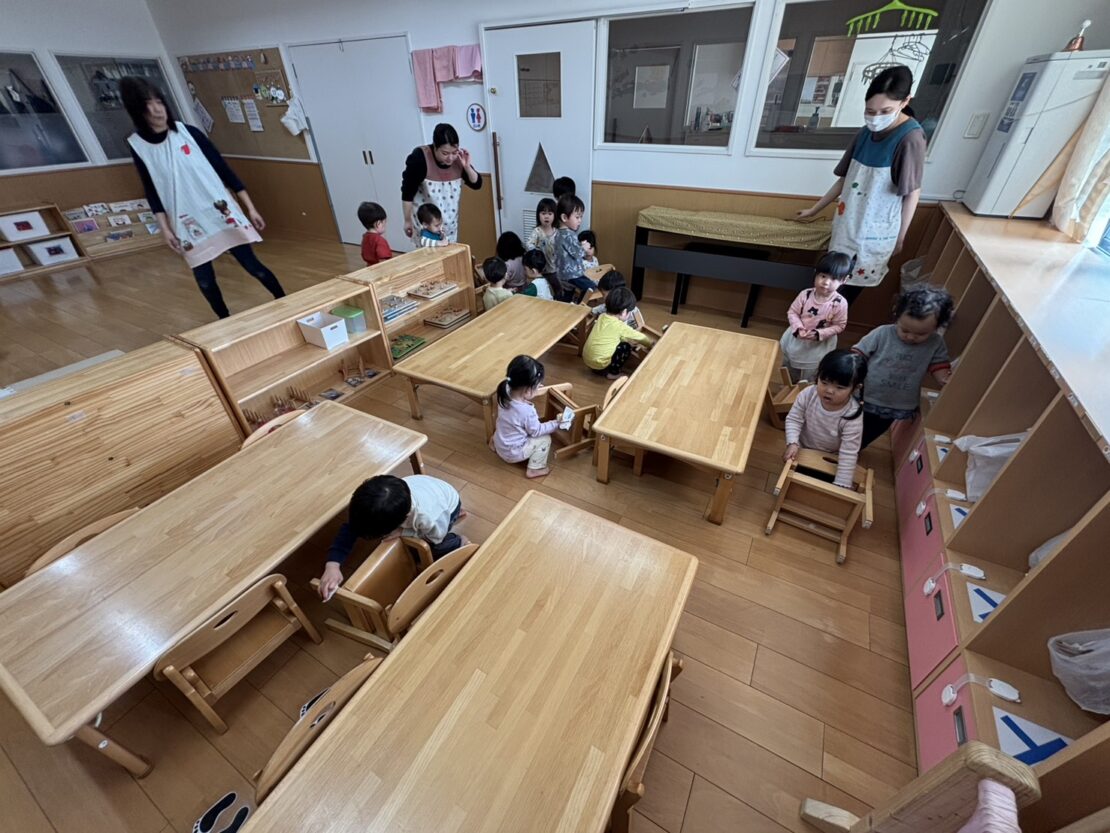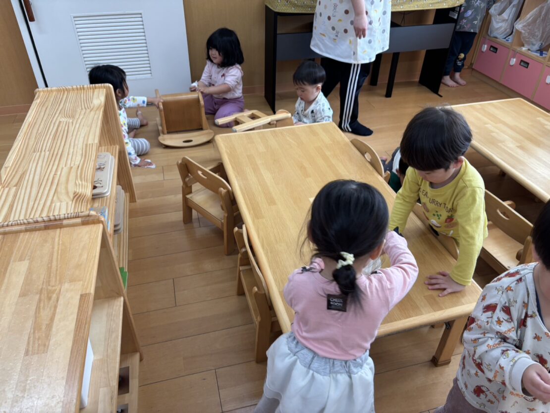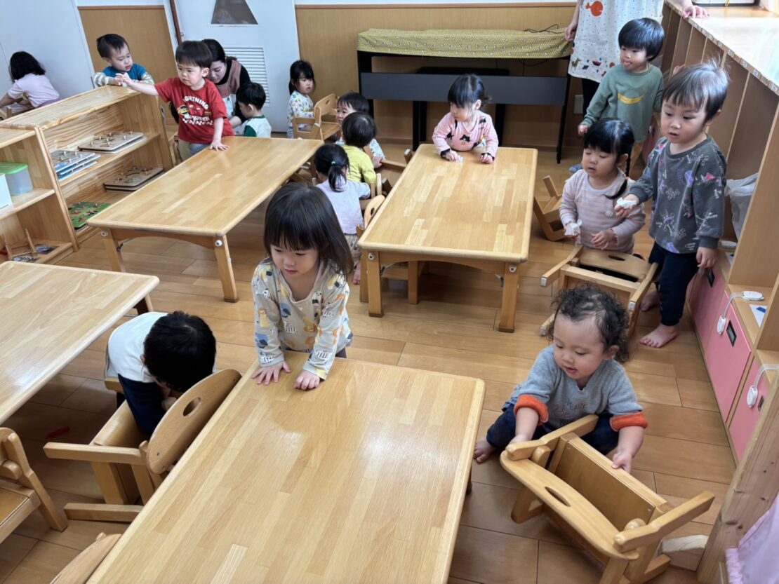 「お別れするお部屋をみんなでピカピカにしよう!」の声掛けだけで、自主的に動き出し、椅子やテーブルを拭きだしたので、先生方もびっくり!