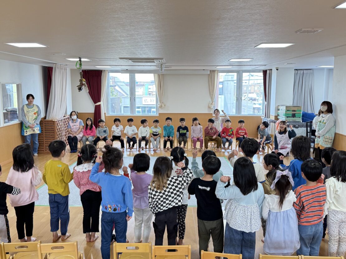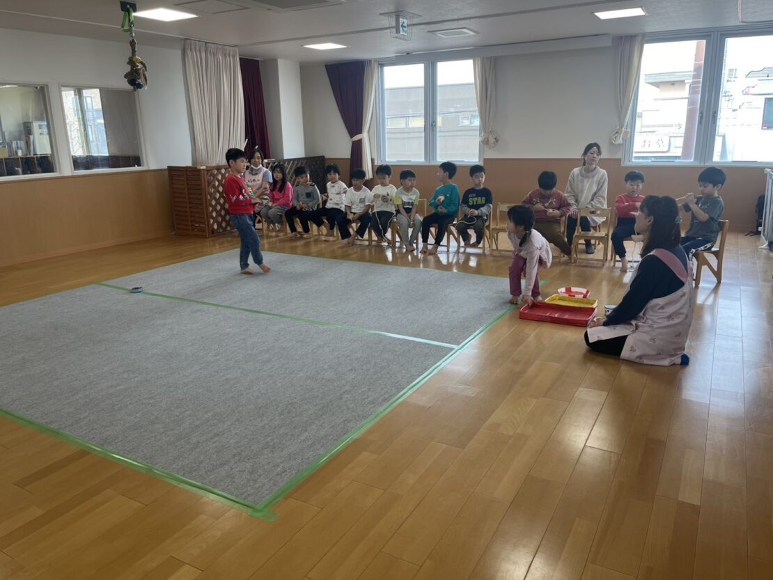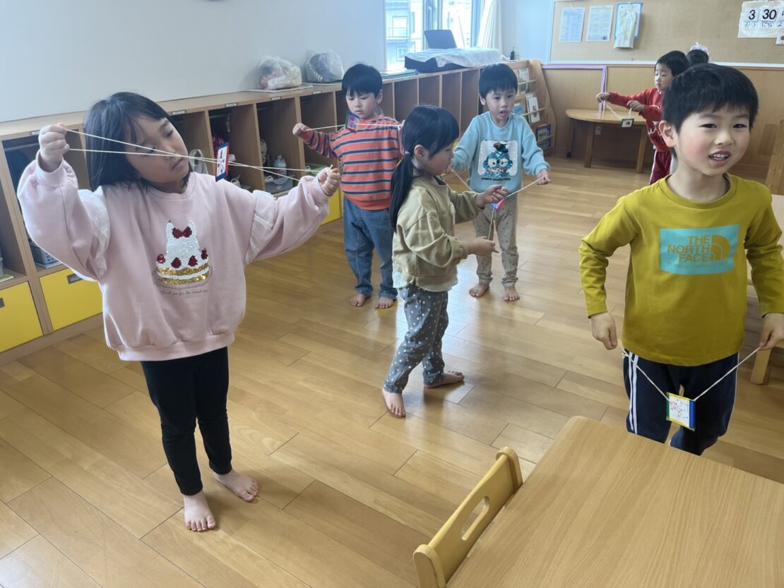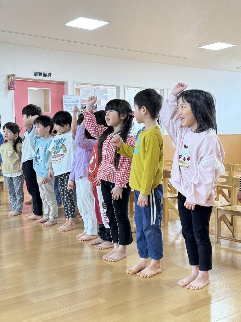 最終登園日を明日に控えて今日はひまわり(年中)組さん、ちゅうりっぷ組(年少)さんとのお別れ会でした。