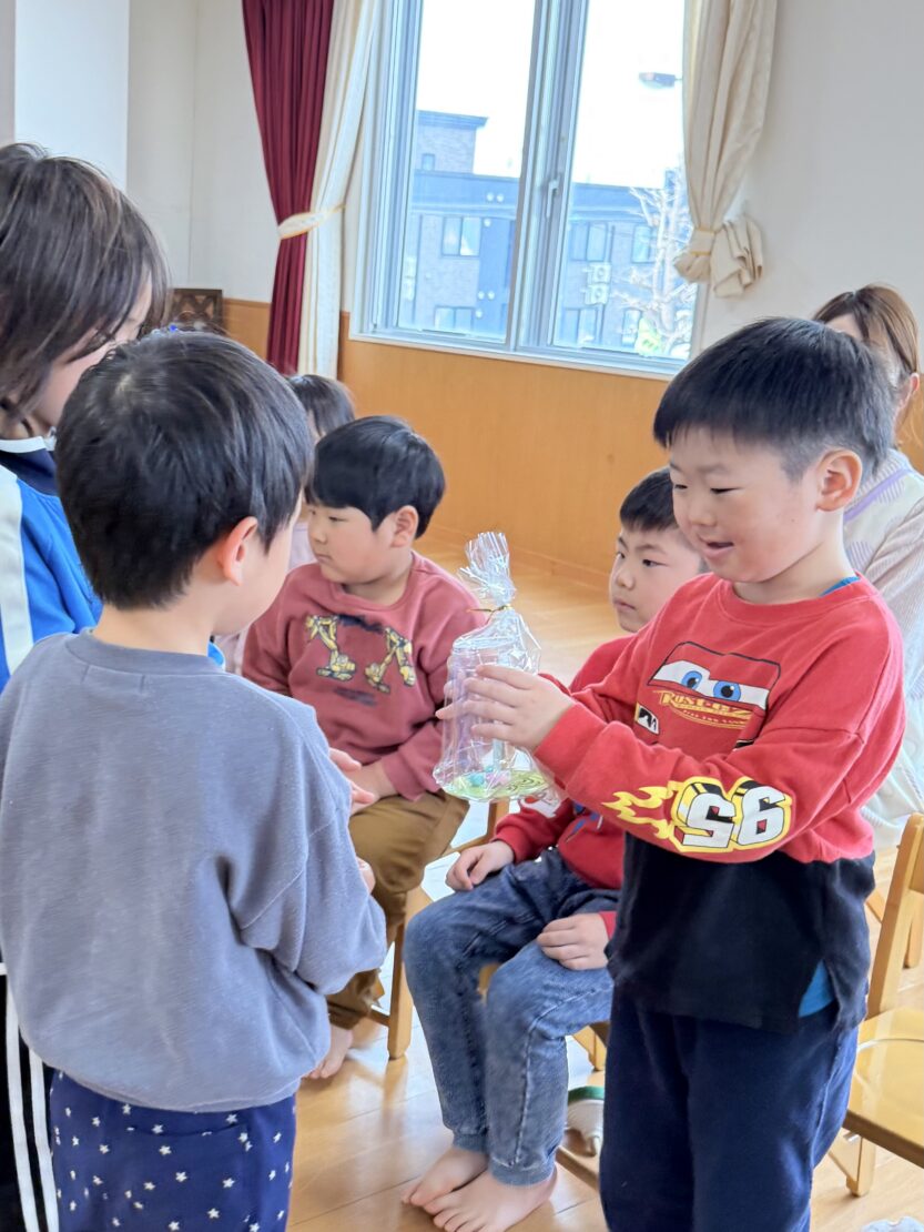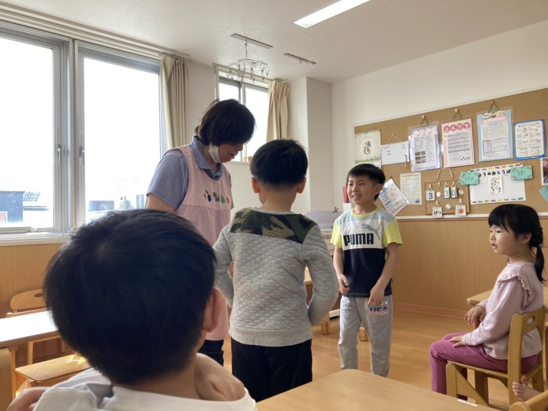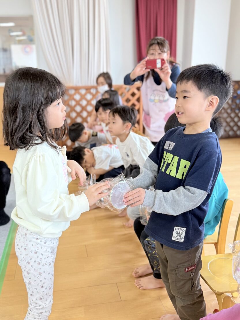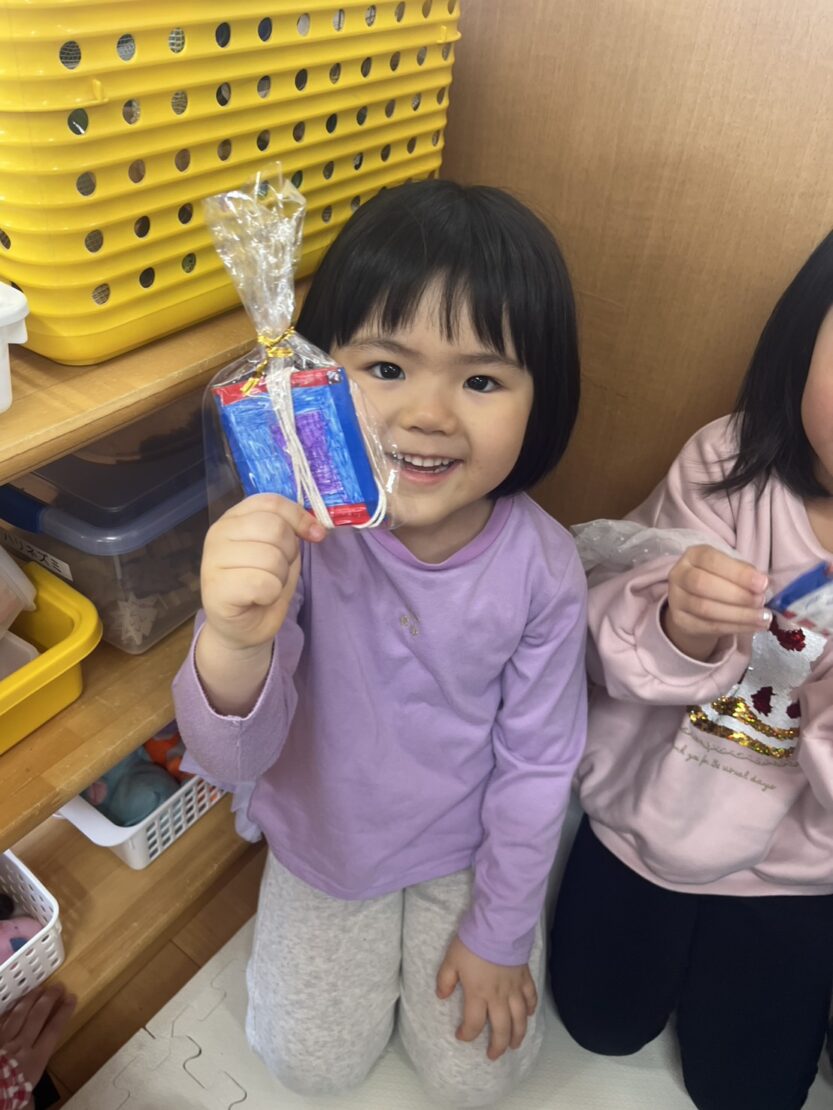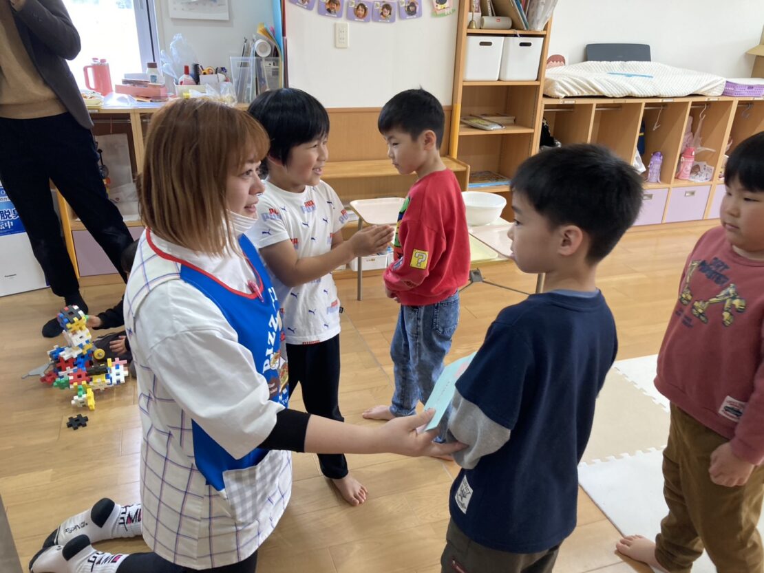 ちゅうりっぷ(年少)組にさくらさんがサプライズでプレゼントを渡しにきてくれました!