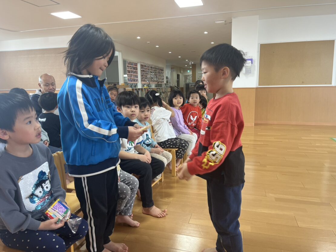 最後に、これまでの感謝の言葉に添えて手作りのおもちゃを交換しました。