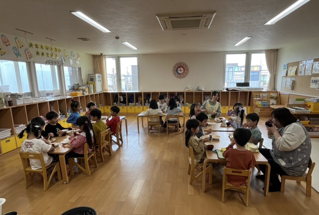 今日でひまわり組での給食は最後ということで、特別に好きな席で食事をしました。
