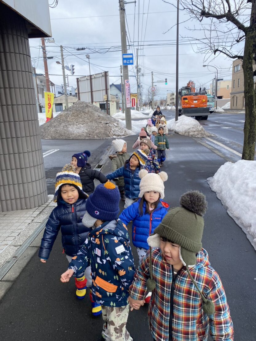 3月6日もも(1歳児)組はお散歩に行きました。