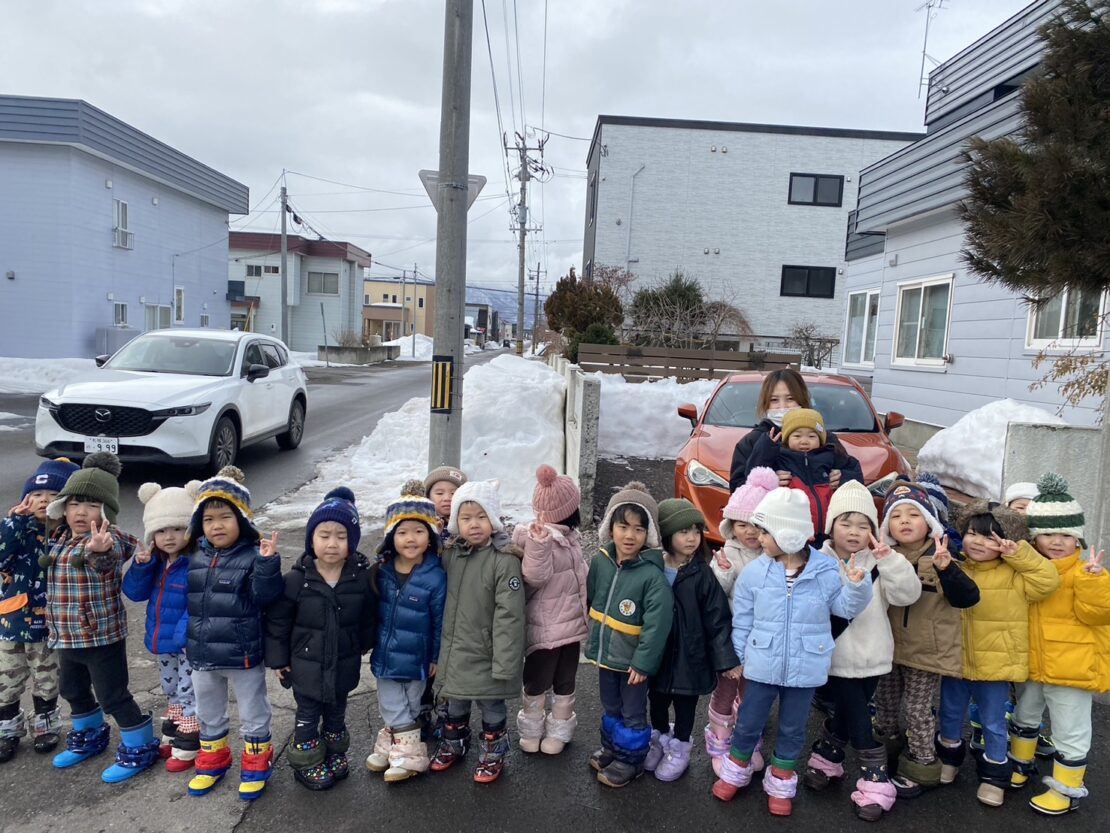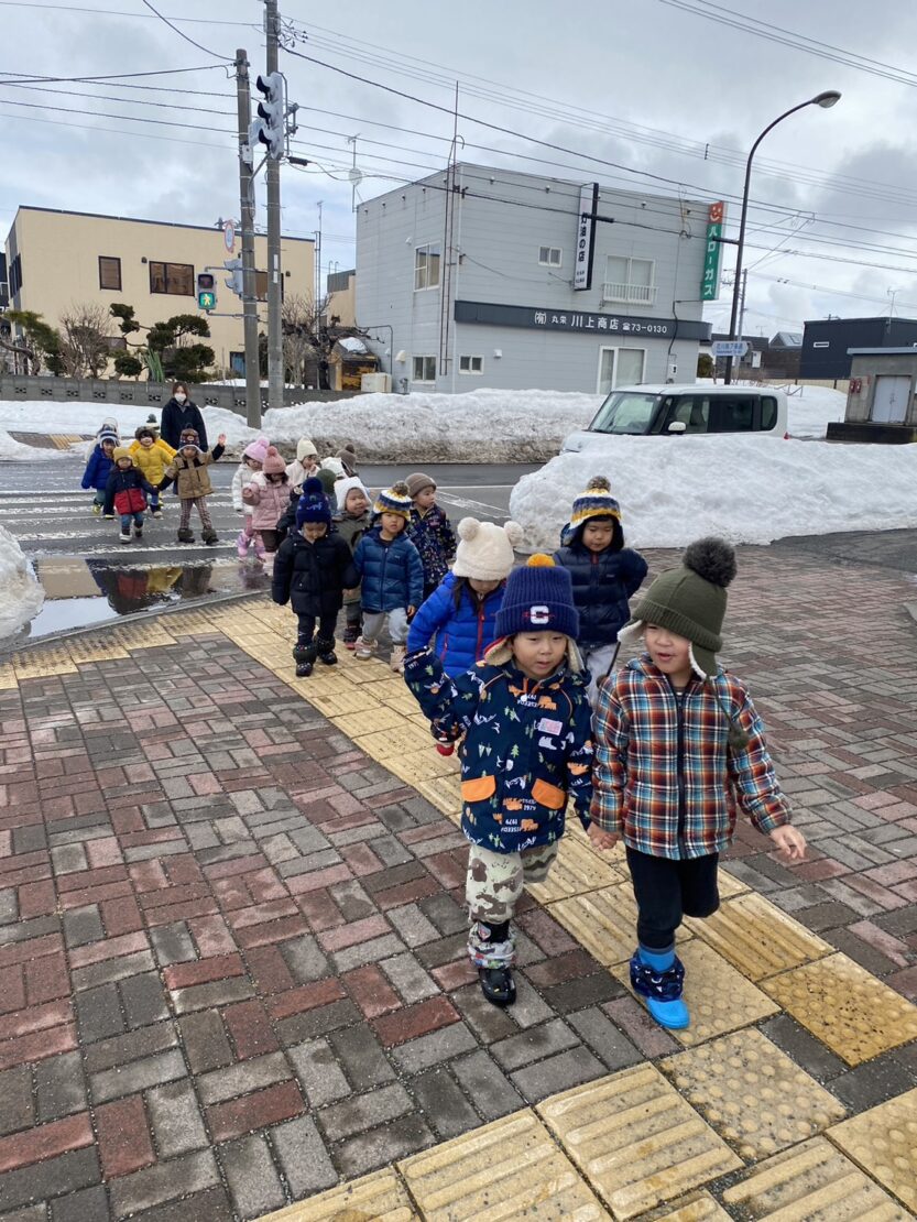 たんぽぽ→交番→南小→たんぽぽのコースを約1時間かけて歩きました!帰りは少しお疲れでしたが友だちと歌を歌ったり会話を楽しみながら頑張りました!