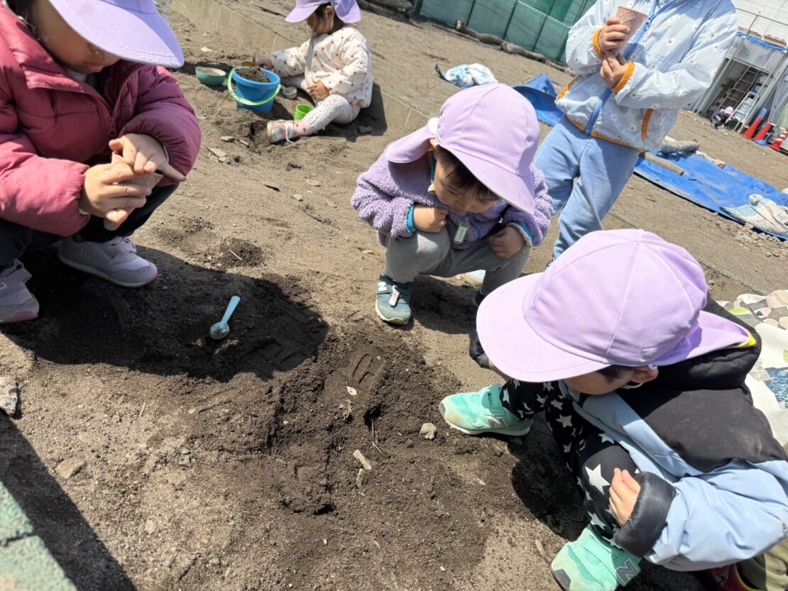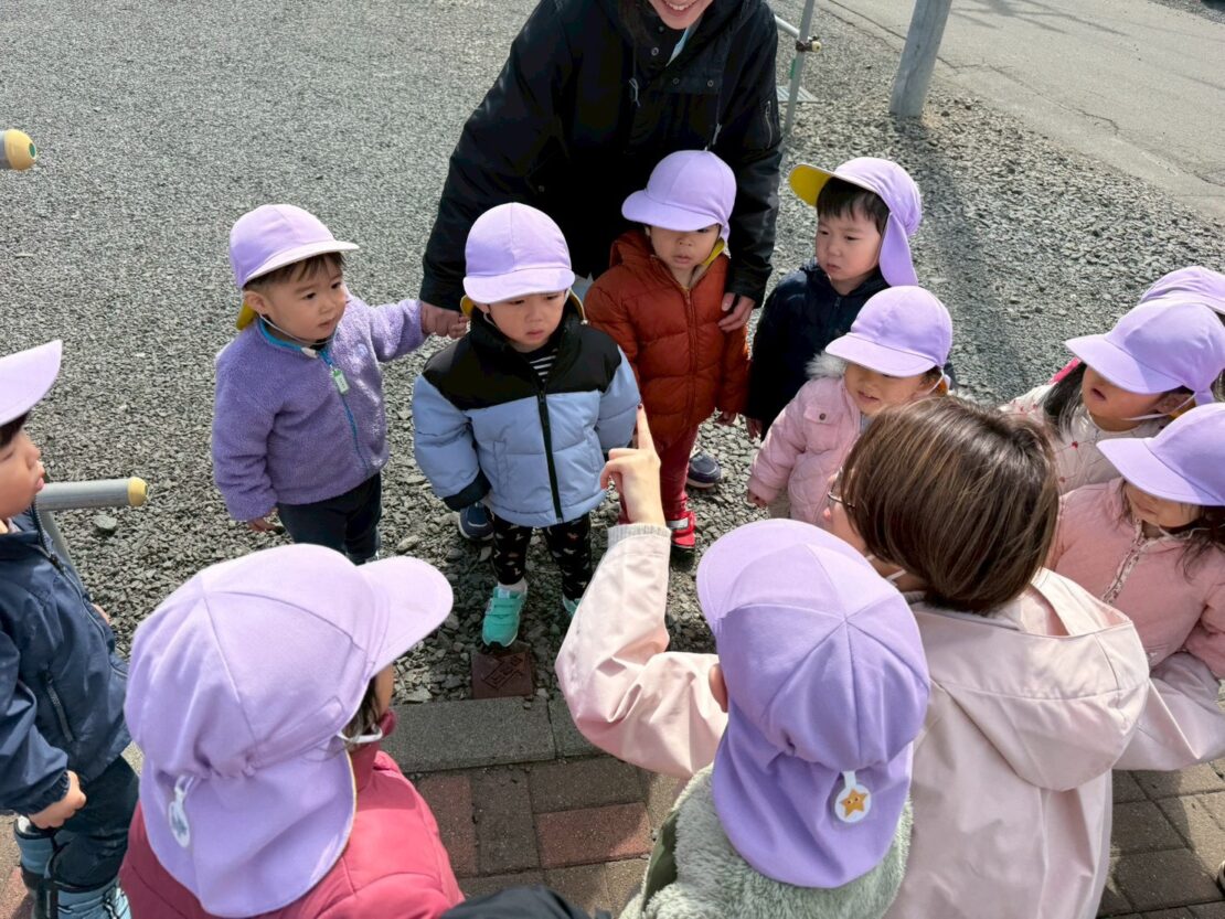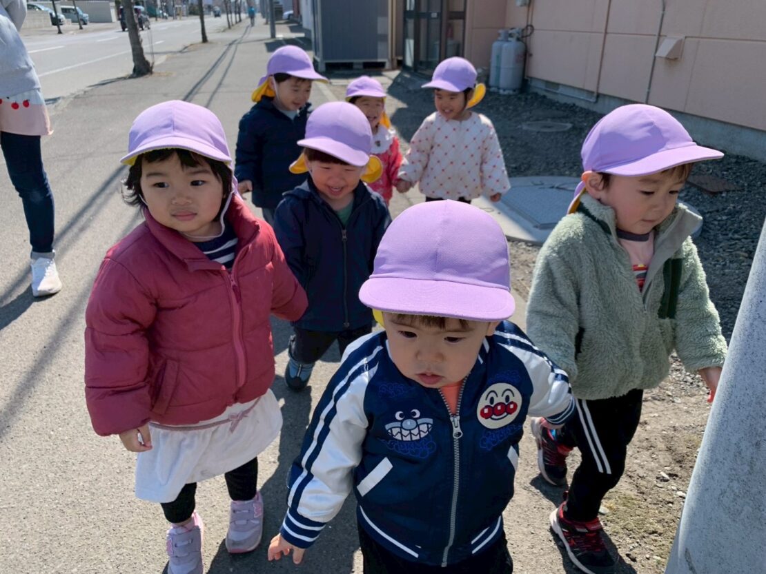 お散歩では、てんとう虫やありを見つけて観察したり、お花を見つけたりなど春を少しずつ感じているすみれさんです♪