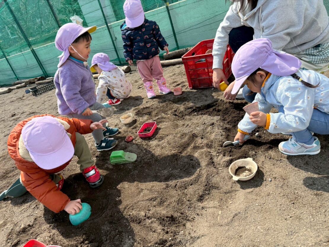 園庭では、砂や土を使って料理作り等も楽しんでいます!