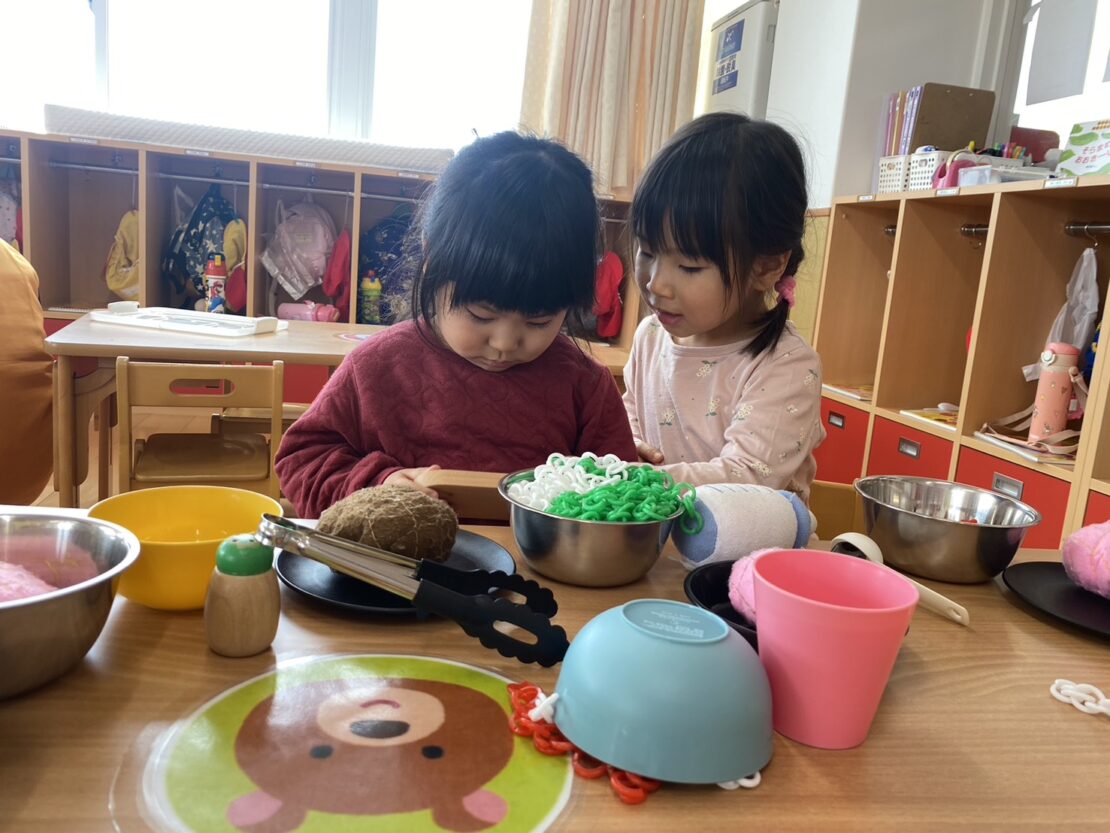 新年度が始まりすみれ(2歳児)組さんでは、新しいお部屋のおもちゃを使って楽しんでいます!