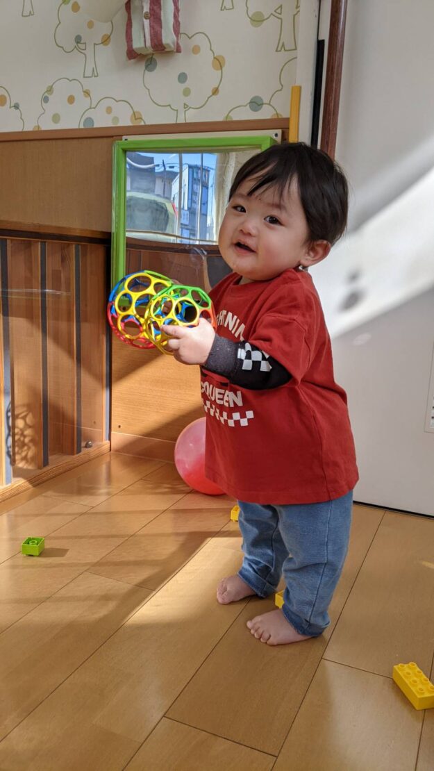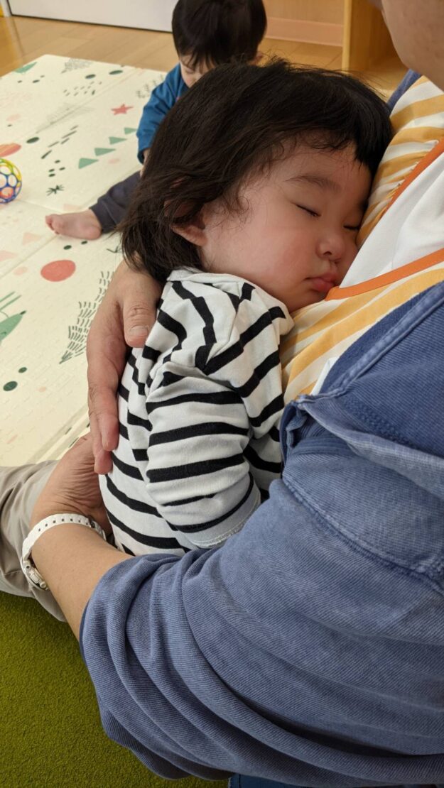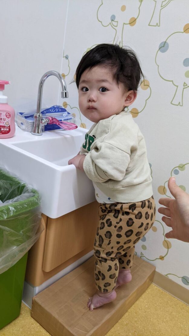 今までは、先生に抱っこされ手を洗っていたのですが、立って自分で洗えるようになりました。