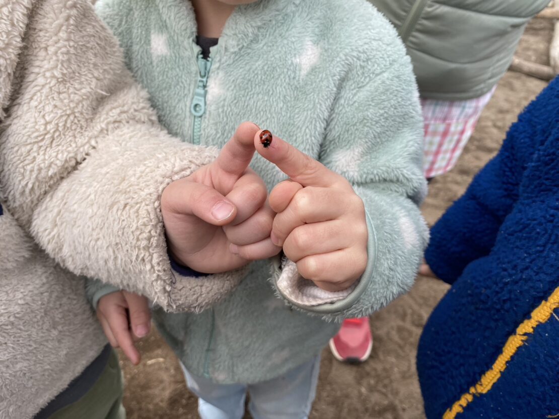 お天道様に向かって進むことを伝えるとみんなで人差し指を伸ばし、「ほんとだー!」と、大興奮していました。