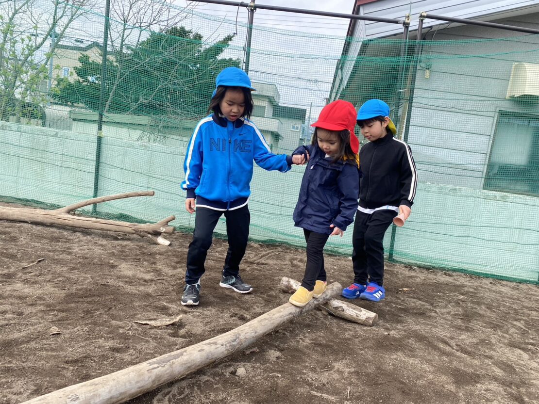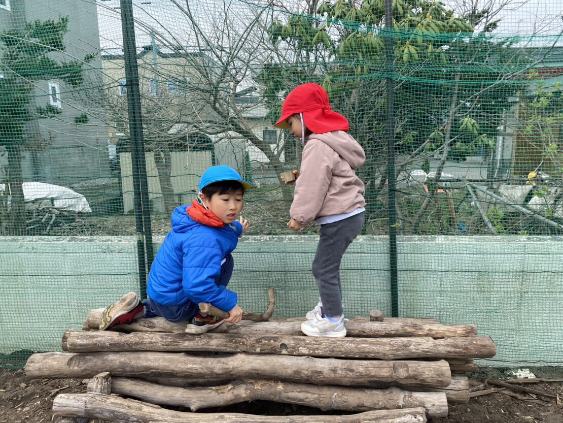 その後は、丸太を重ねてシーソーも楽しんでいました。