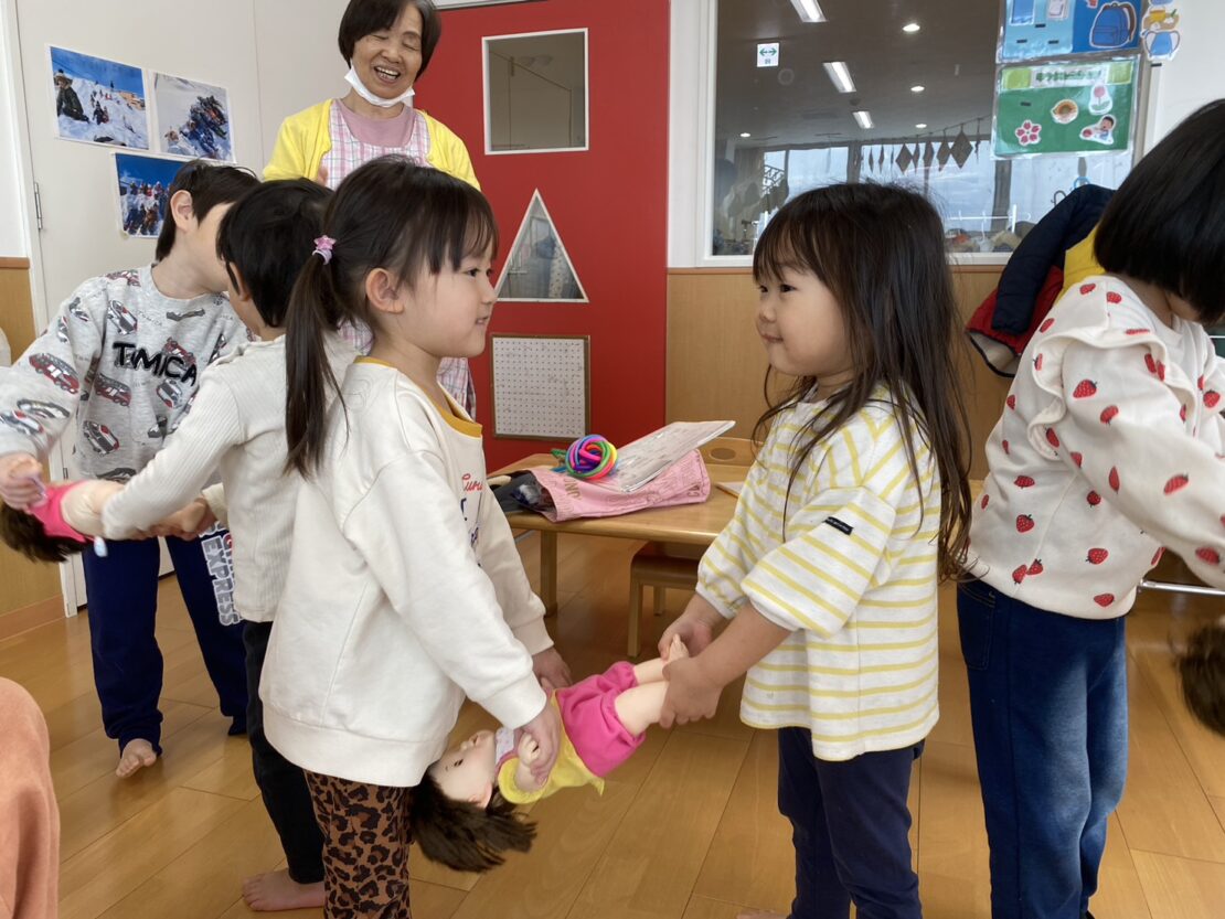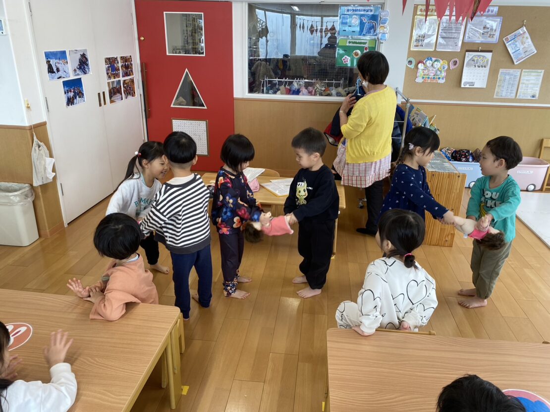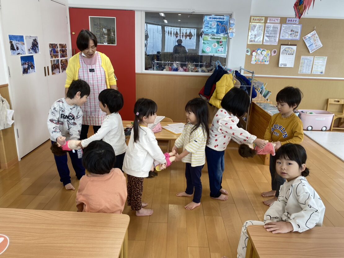ちゅうりっぷ(年少)組さんでは、2人1組になって行うものが多かったわらべうた!