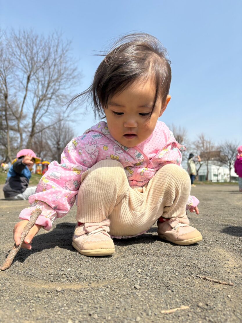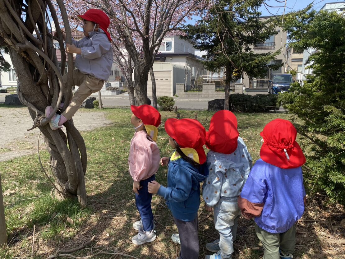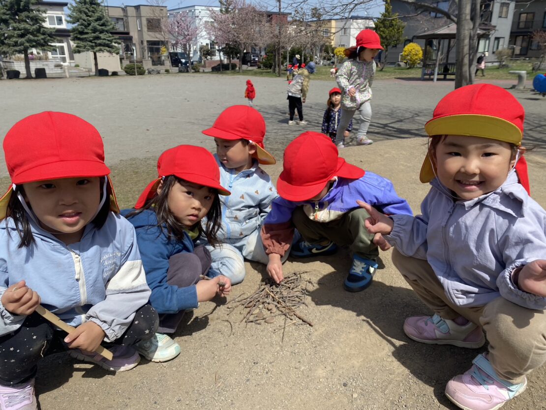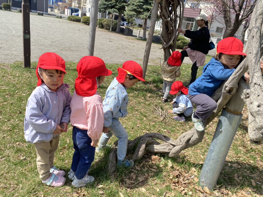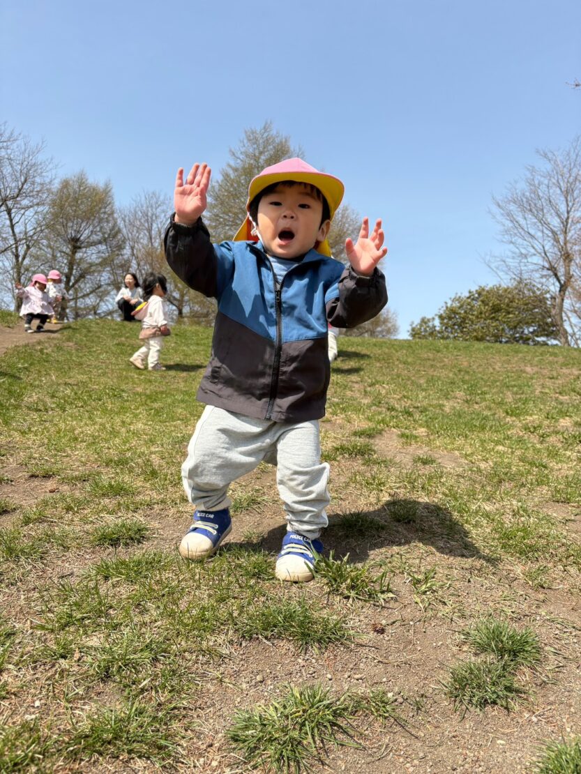 朝の会で「公園に行くよー!」と伝えると、つくし組から進級したお友だちが率先して「いぇーい!」と喜んでくれます♪(笑)