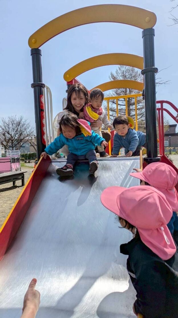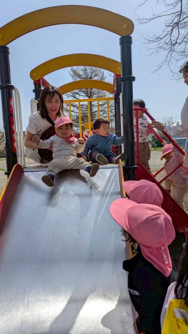 滑り台で滑るには腹筋も必要で、最初は寝転がってしまっていたお友だちも回数を重ねるごとに上手になり、最後まで座ったまま滑ることができるようになっていました⭐