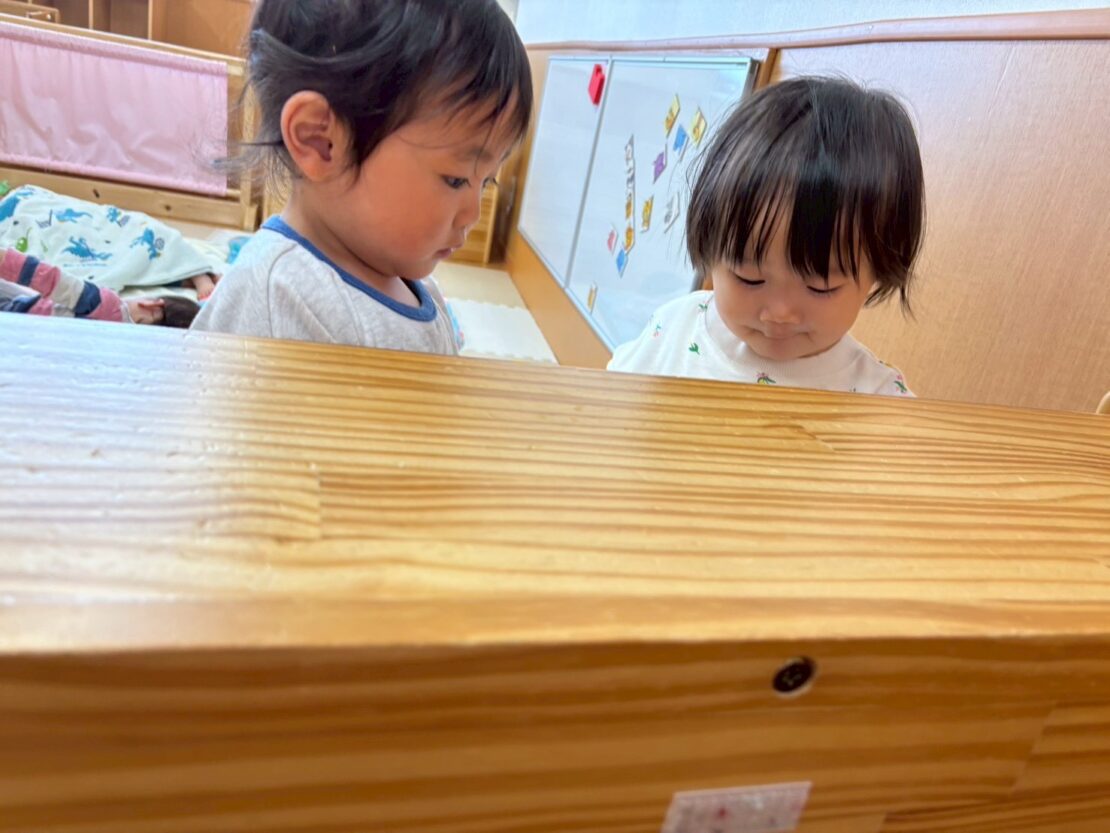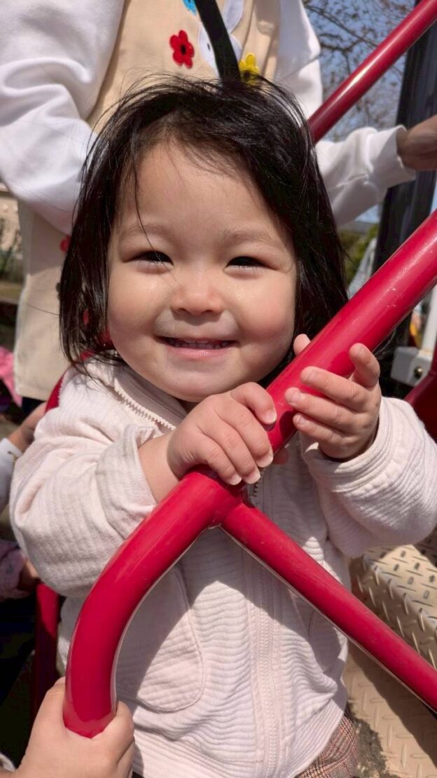 もも(1歳児)組さんでも、涙を見せていた子も笑顔で楽しむ姿が見られます。