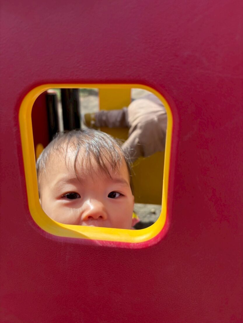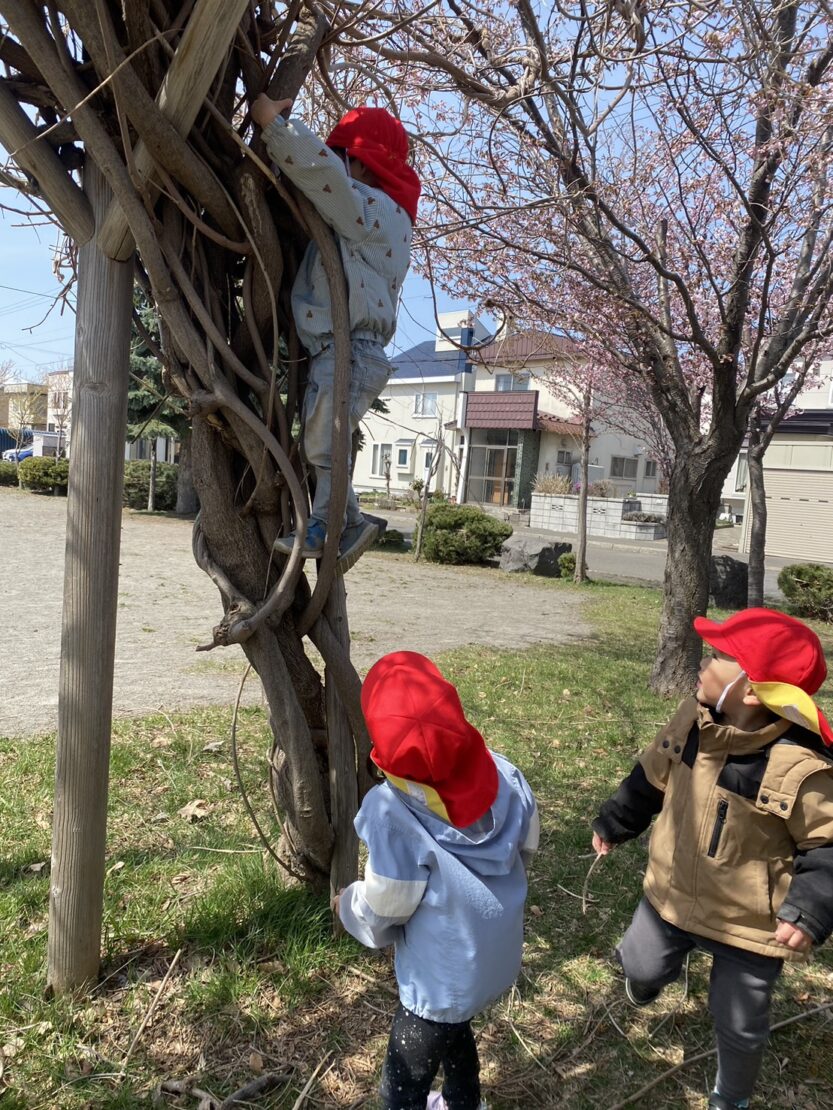 遊具で思い切り遊ぶ子どもたちでしたが、後半は藤のツルが木の柱に巻きついている場所でプチ木登り?が始まり、、、