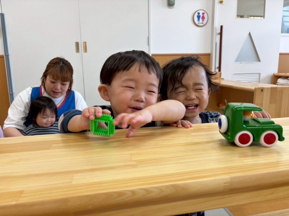 はじめは不安そうにしていた子も、園の生活リズムに慣れてきて、笑顔で過ごせる時間が増えてきました。