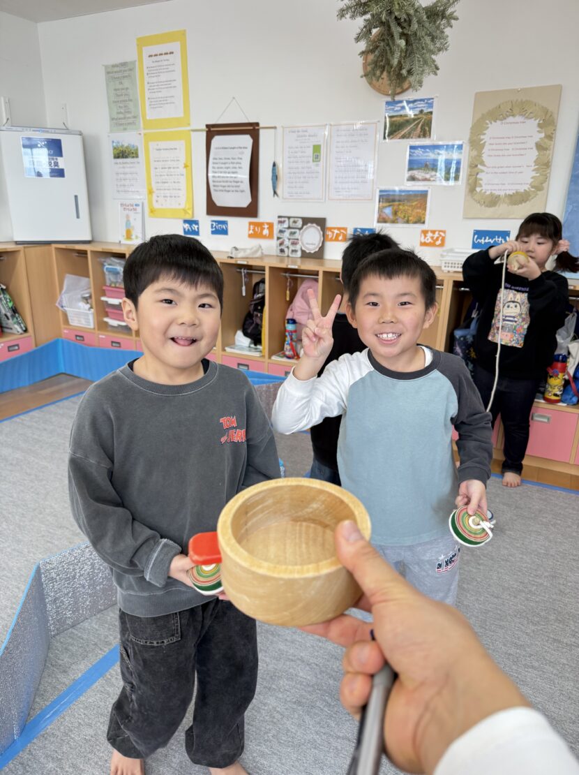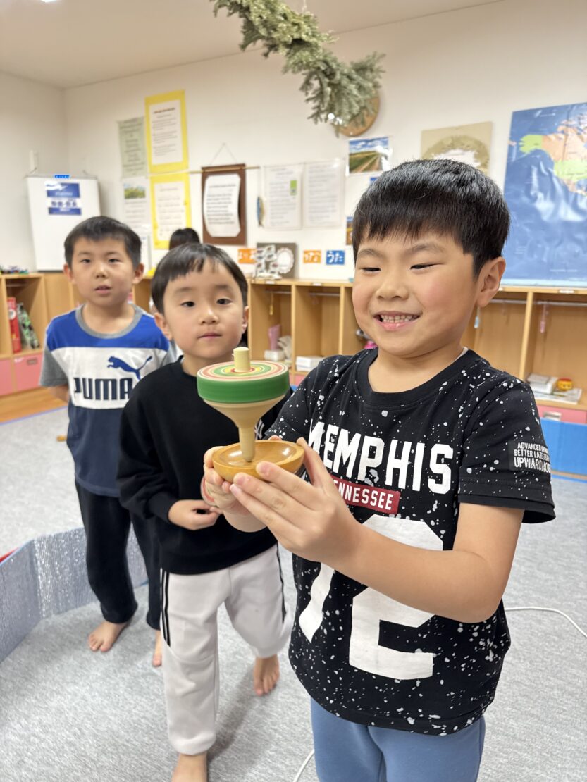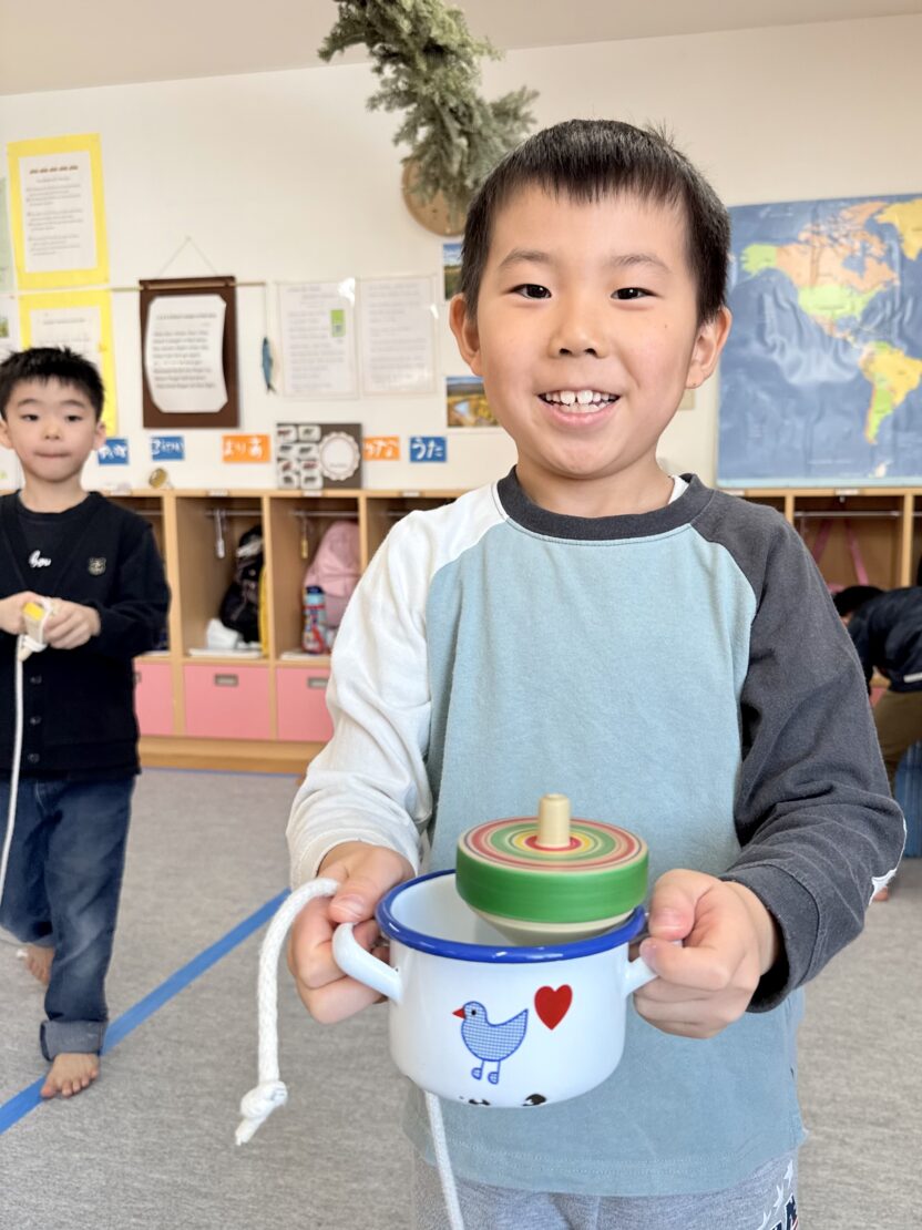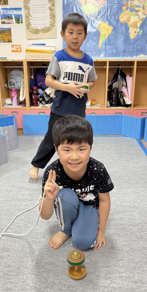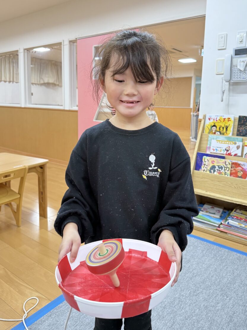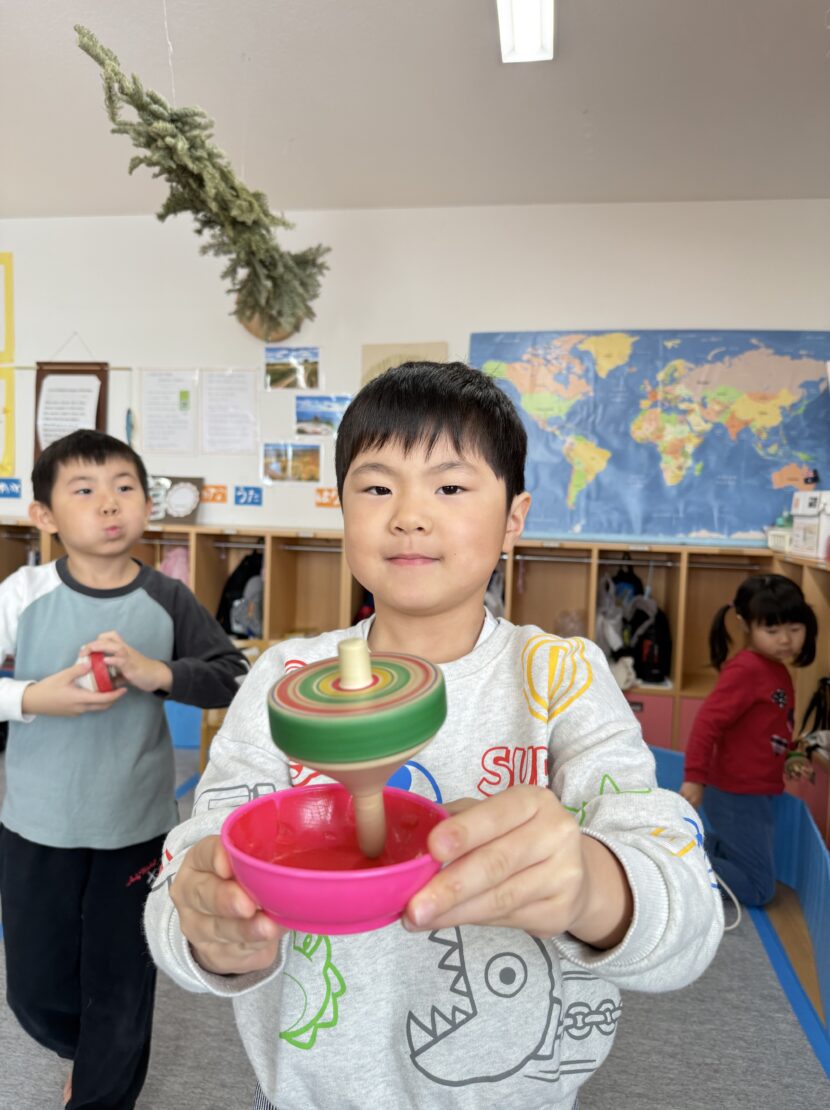 さくら(年長)組ではコマの投げ入れが佳境に入っています。