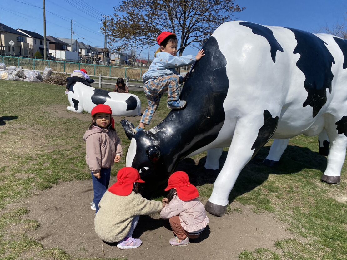 牛のオブジェに乗ったり築山や土管のトンネルでごっこ遊びをしたり存分に楽しんだ子どもたち!