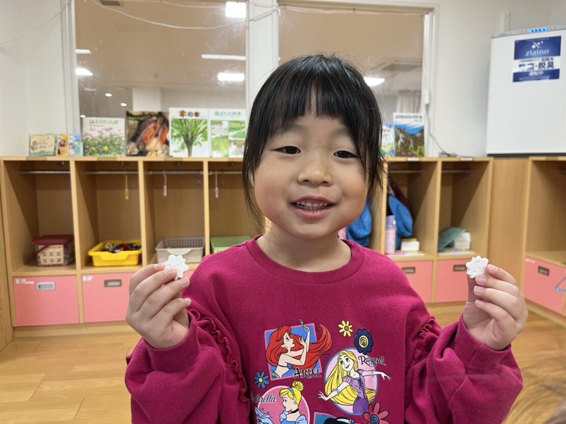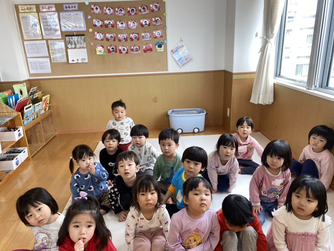 今日のちゅうりっぷ(年少)組さん。お部屋でゆったり遊んだあと、初めて赤い帽子をかぶってお散歩へ!