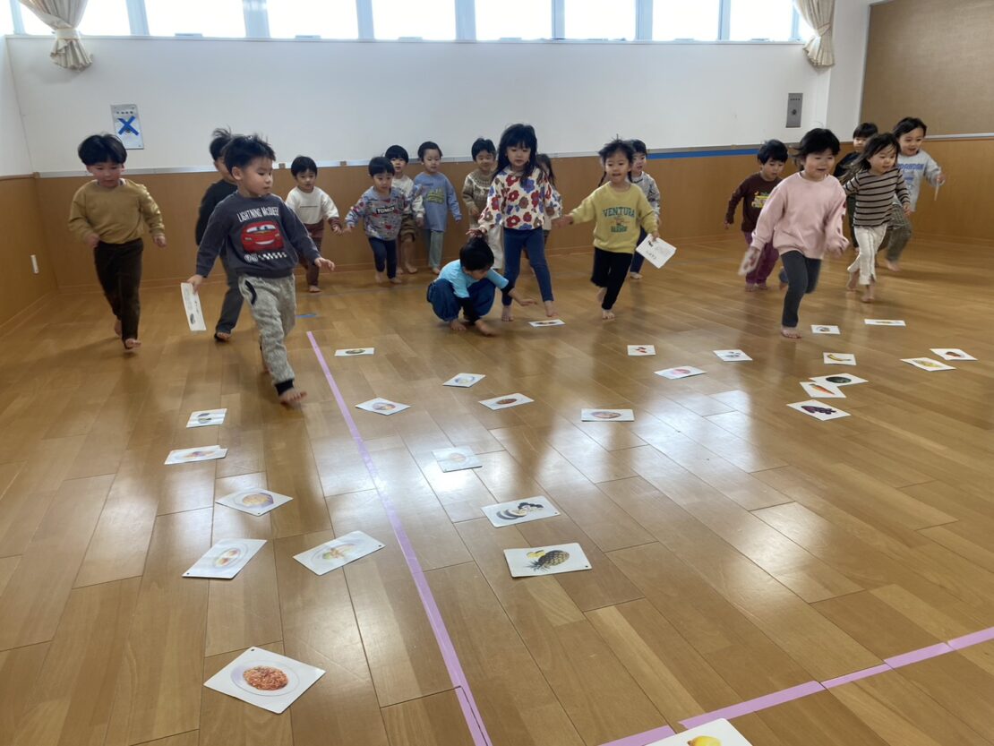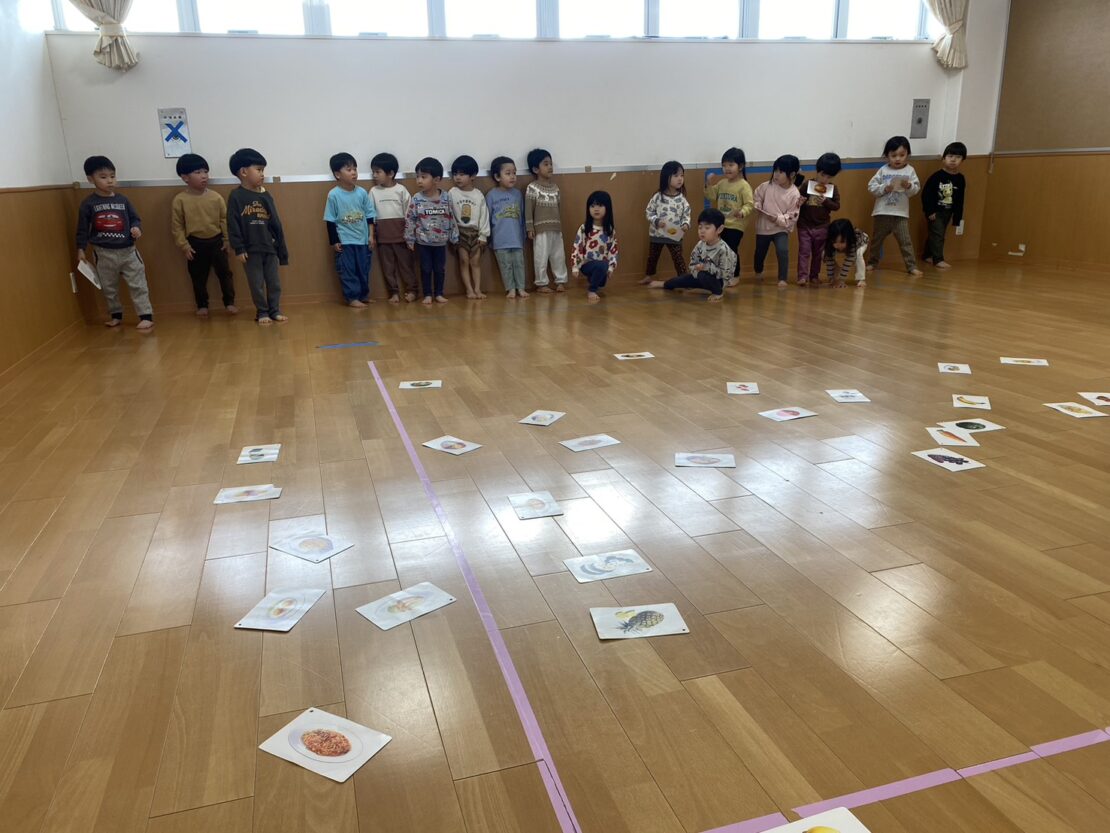 食べ物カードをカルタに見立ててカード取りゲーム!